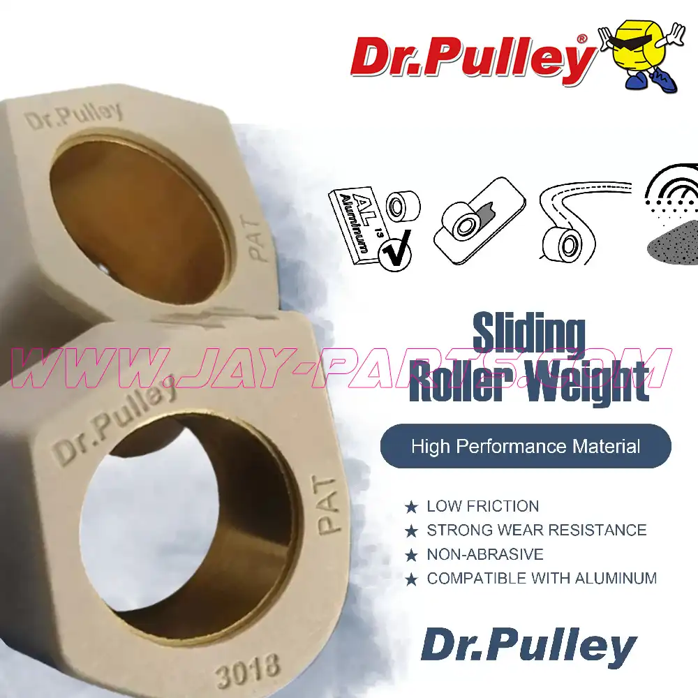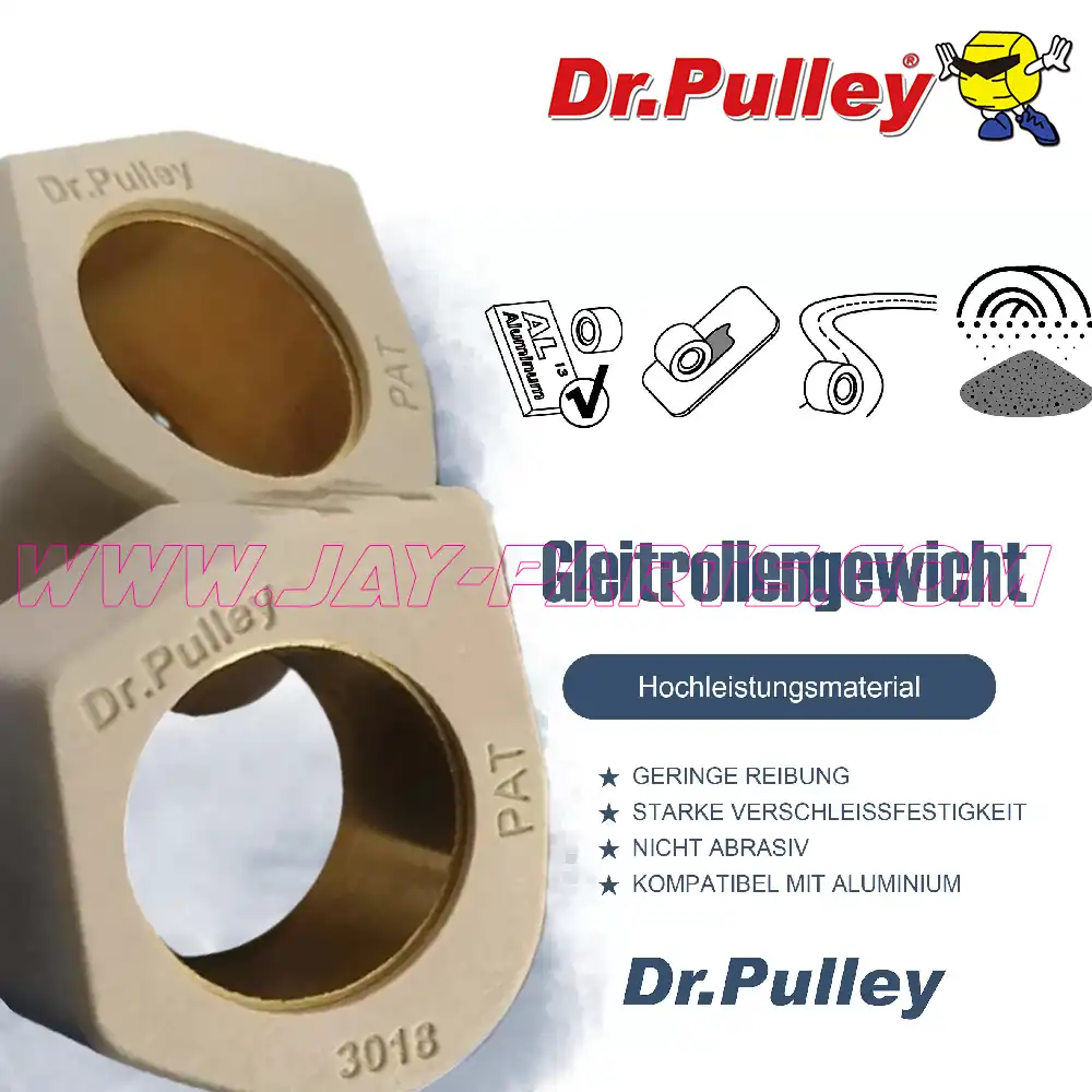Um das beste Ergebnis beim Tuning zu bieten, verwendet Dr. Pulley bei den SR Gleitrollen (Variomatik Gewichtsrollen) nur hochwertige Legierungen. Die verwendeten Kupfer- und Aluminiumlegierungen ermöglichen eine höhere Genauigkeit bei der Gewichtsauswahl.
